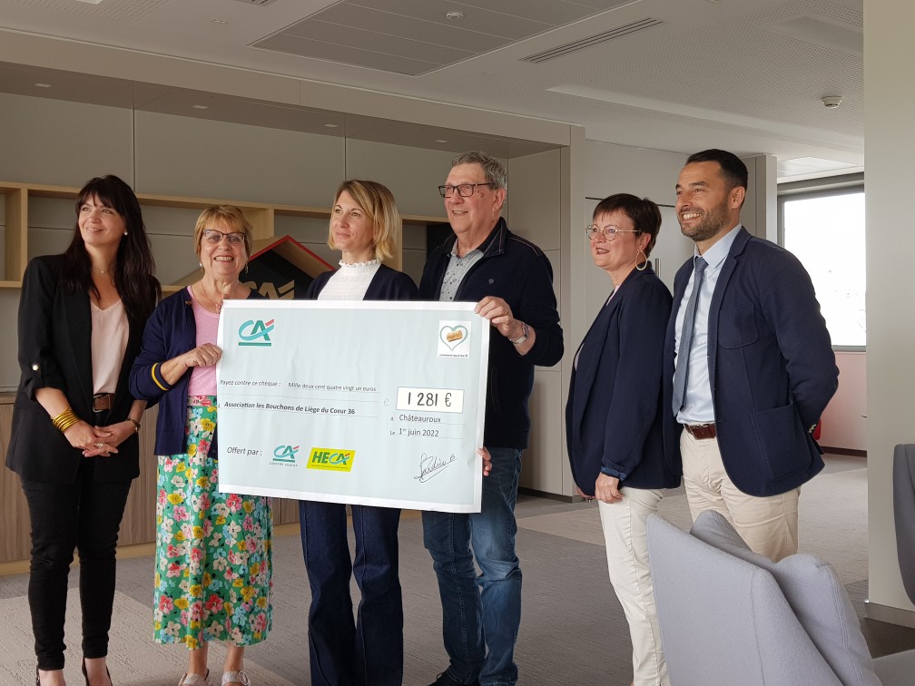 Notre association les bouchons de liège du coeur 36 a été choisie par la caisse régionale du crédit agricole du Centre Ouest pour bénéficier de l’action solidaire des arrondis de salaire . Chaque collaborateur du CA fait don , s’il le souhaite, des centimes issus de son salaire, et la caisse régionale abonde à hauteur de 100% des sommes versées à l’association choisie.