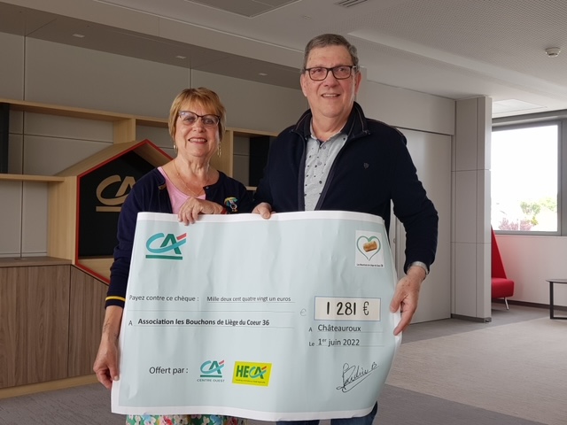 Le compte de notre association, les bouchons de liège du coeur 36, vient d’être abondé des 1281€ .